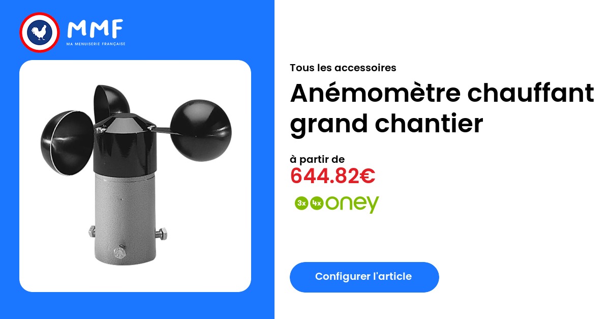 Cet anémomètre chauffant est spécialement conçu pour les grands chantiers, offrant une mesure précise de la vitesse du vent et une protection fiable pour vos protections solaires extérieures.