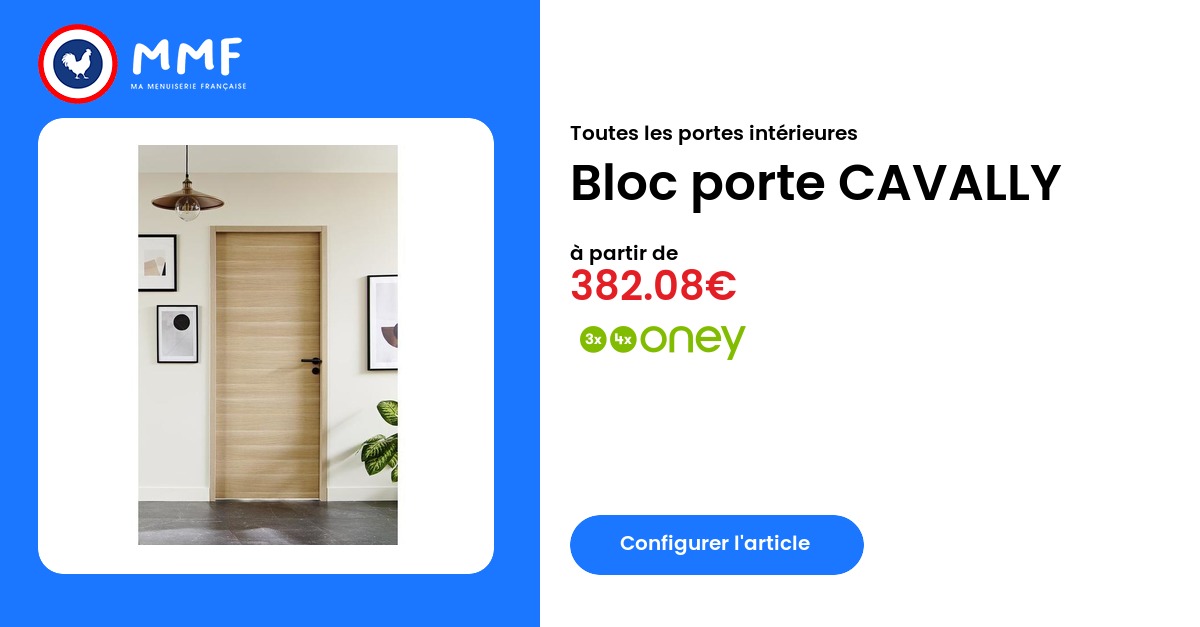 Que vous cherchiez un bloc porte contemporain bois pour un projet neuf ou une porte sur-mesure bois pour une rénovation, la gamme Cavally s'adapte à toutes les configurations. Des tapées d'isolation sont également disponibles pour améliorer les performances thermiques et acoustiques selon l'épaisseur de vos cloisons.