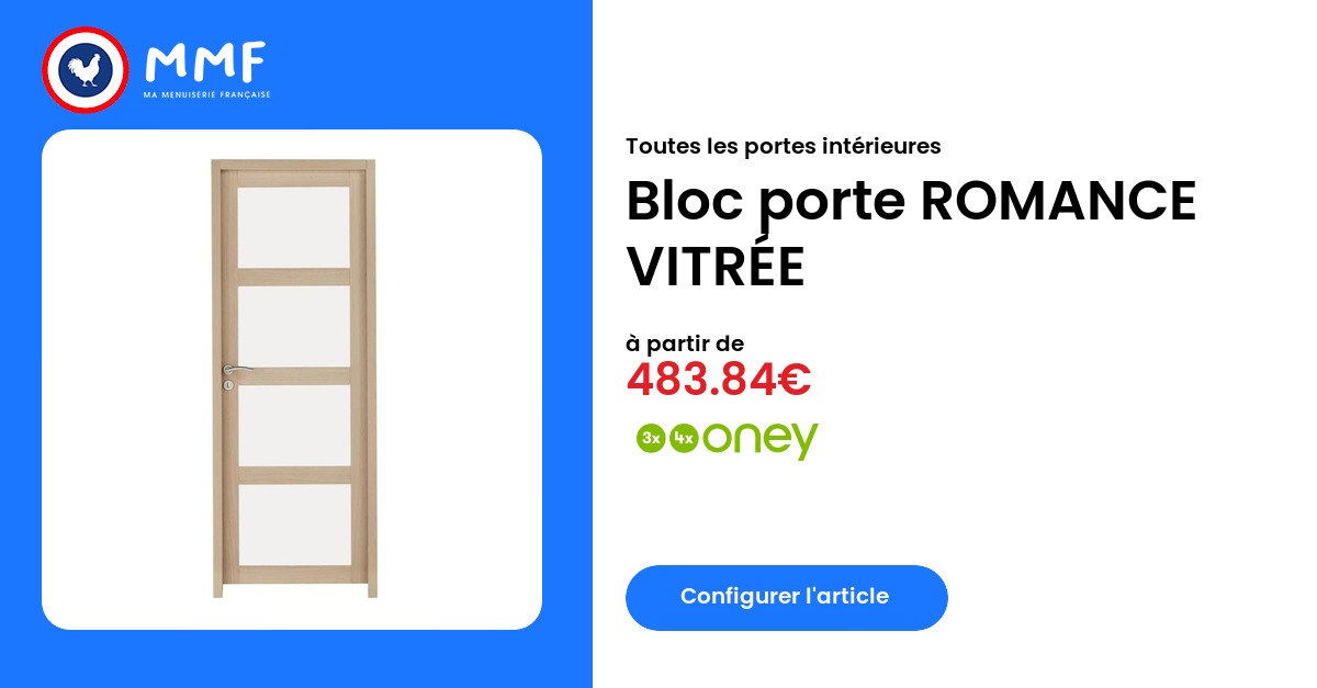 Chez Ma Menuiserie Française, nous nous engageons à vous offrir des produits de qualité supérieure. Notre bloc-porte ROMANCE VITRÉE bénéficie d'une garantie fabricant qui vous assure tranquillité d'esprit et satisfaction durable.