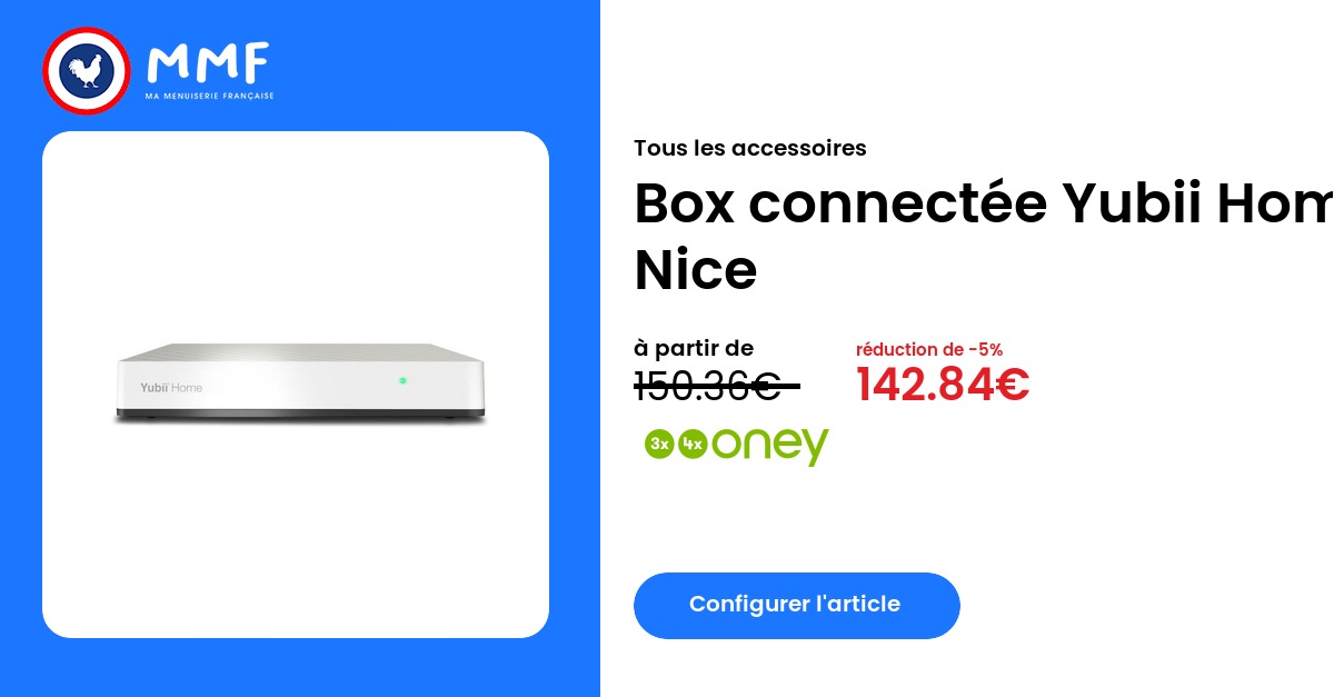 - La box domotique NICE Yubii devient le cœur de votre nouvelle maison intelligente. Elle permet la communication entre tous les appareils intelligents de votre domicile, compatible avec plus de 3000 dispositifs tiers comme : Philips, Sonos, Alexa, Google, 1 etc.