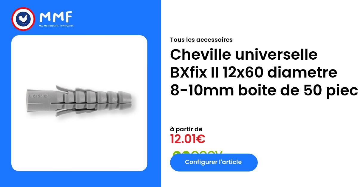 Tous les accessoires Cheville universelle BXfix II 12x60 diametre 8-10mm boite de 50 pieces