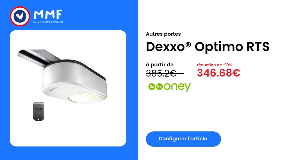 N'attendez plus, motorisez votre porte de garage avec le kit DEXXO OPTIMO RTS et profitez d'un confort et d'une sécurité accrus au quotidien !