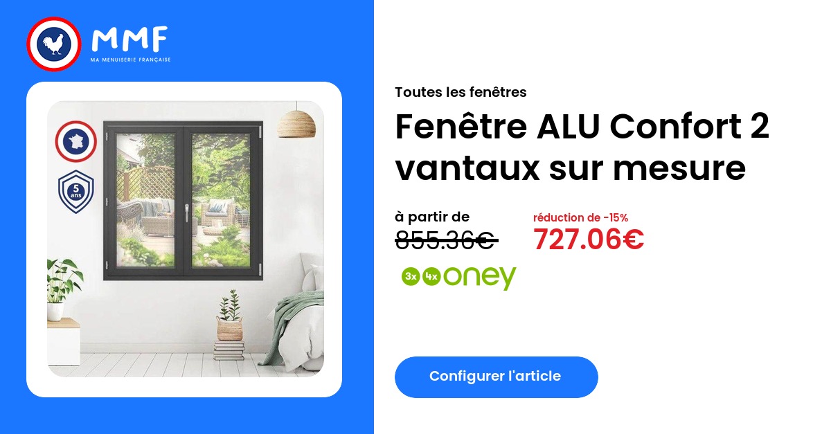 Configurez votre fenêtre aluminium 2 vantaux directement en ligne ou contactez Ma Menuiserie Française au 04 68 09 00 45 pour un accompagnement personnalisé dans la création de votre projet sur mesure.