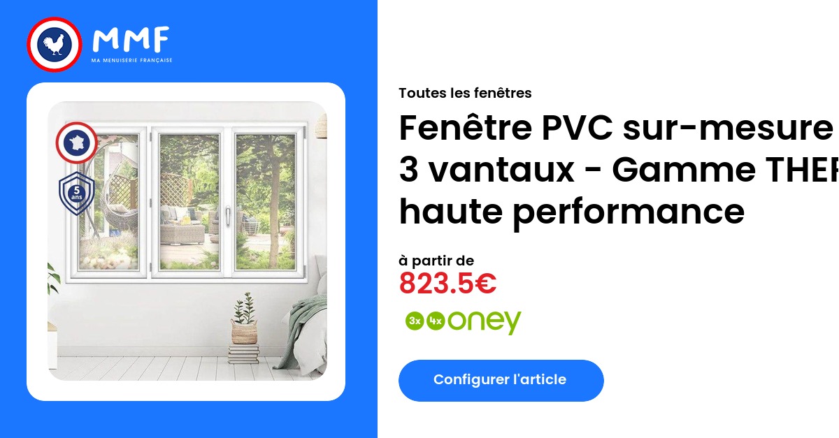 Prêt à transformer votre habitat avec une fenêtre PVC THERMIA 3 vantaux haute performance? Commencez dès maintenant la configuration de votre menuiserie sur-mesure.