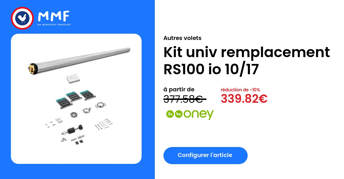 e kit destiné à motoriser un volet roulant existant à manivelle ou à sangle, dans tous types de coffres quelle que soit sa marque. Fourni avec tous les accessoires nécessaires à la mise en œuvre.