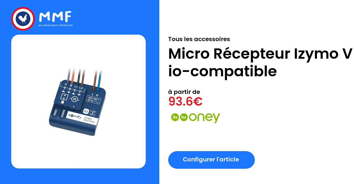Transformez facilement vos volets roulants filaires en volets roulants connectés grâce au micro-récepteur Izymo io-homecontrol de Somfy, une solution innovante spécialement conçue pour les professionnels de la menuiserie et de la rénovation.