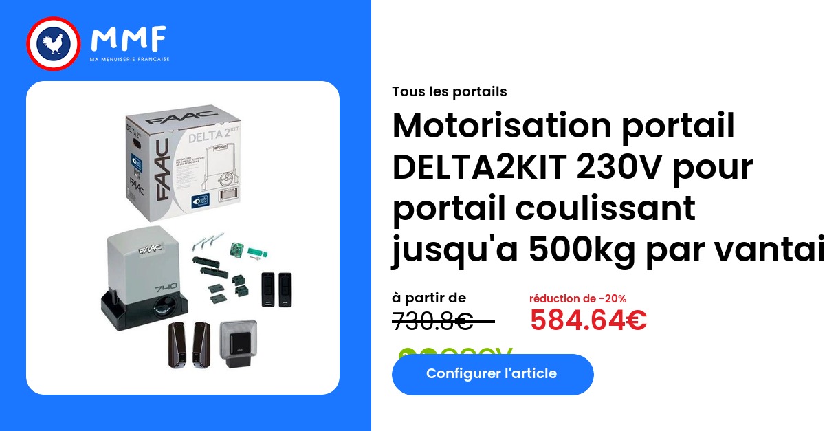 Tous les portails Motorisation portail DELTA2KIT 230V pour portail coulissant jusqu'a 500kg par vantail