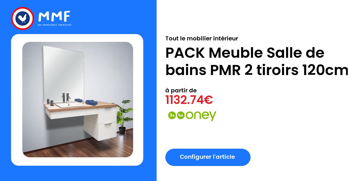 Tout le mobilier intérieur PACK Meuble Salle de bains PMR 2 tiroirs 120cm