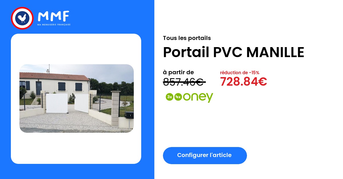 Ce portail PVC MANILLE allie solidité, esthétique moderne et fonctionnalité, parfait pour ceux qui souhaitent une solution pratique et élégante pour leur entrée.