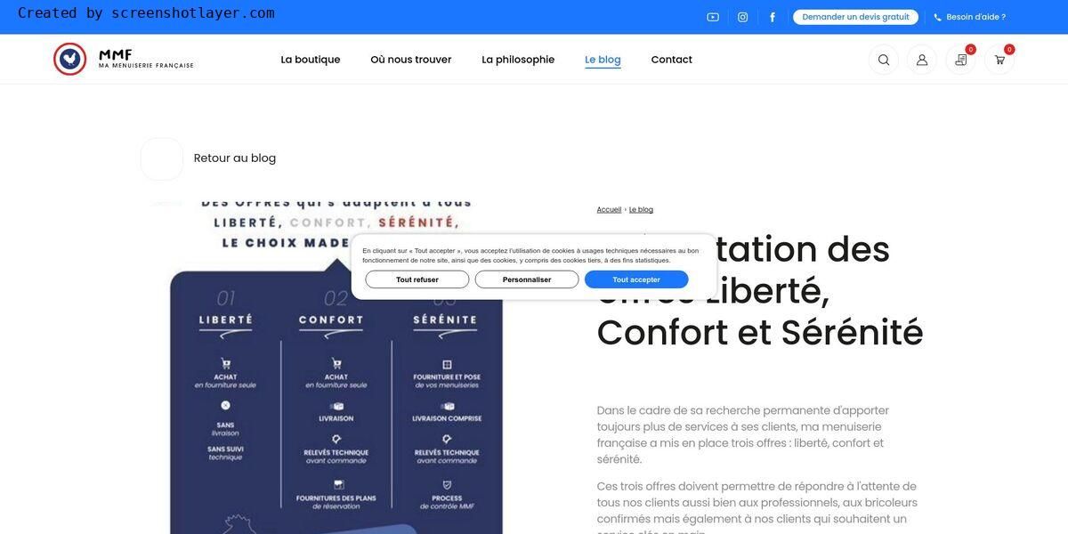 Dans le cadre de sa recherche permanente d'apporter toujours plus de services à ses clients, ma menuiserie française a mis en place trois offres : liberté, confort et sérénité.