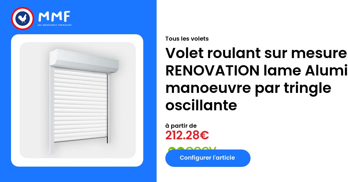 Tous les volets Volet roulant sur mesure RENOVATION lame Aluminium manoeuvre par tringle oscillante