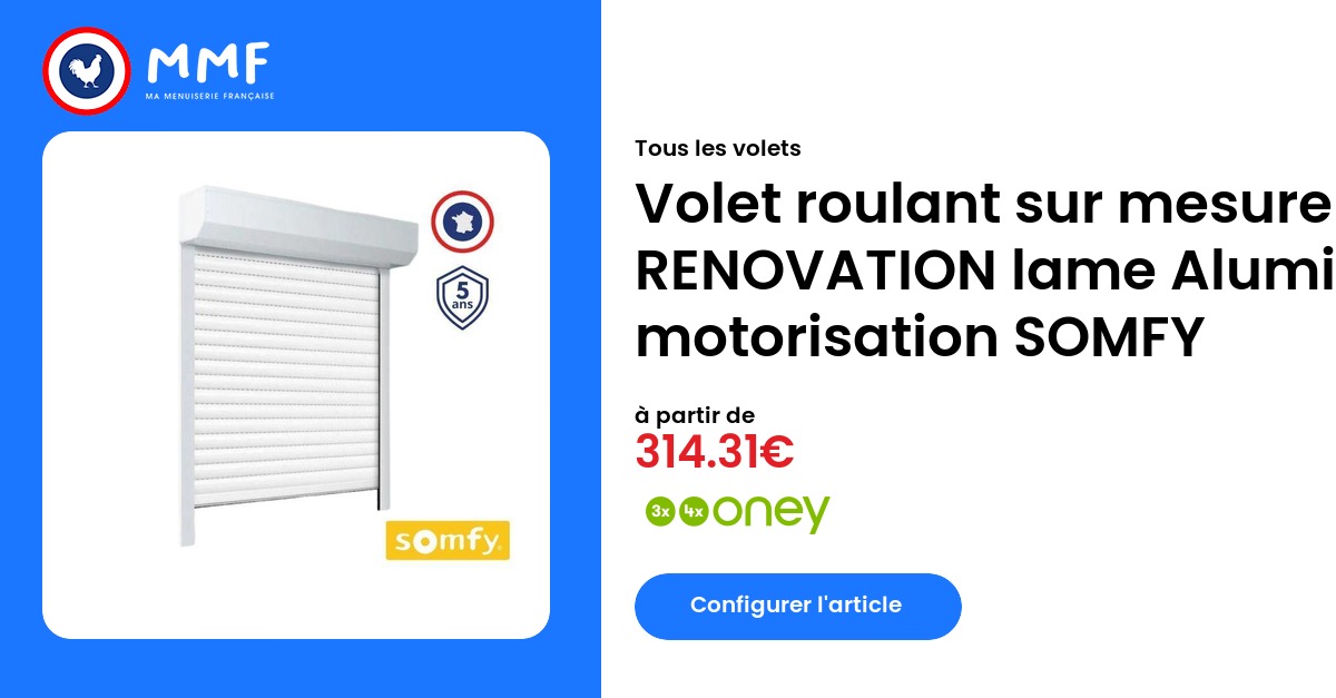Tous les volets Volet roulant sur mesure RENOVATION lame Aluminium motorisation SOMFY